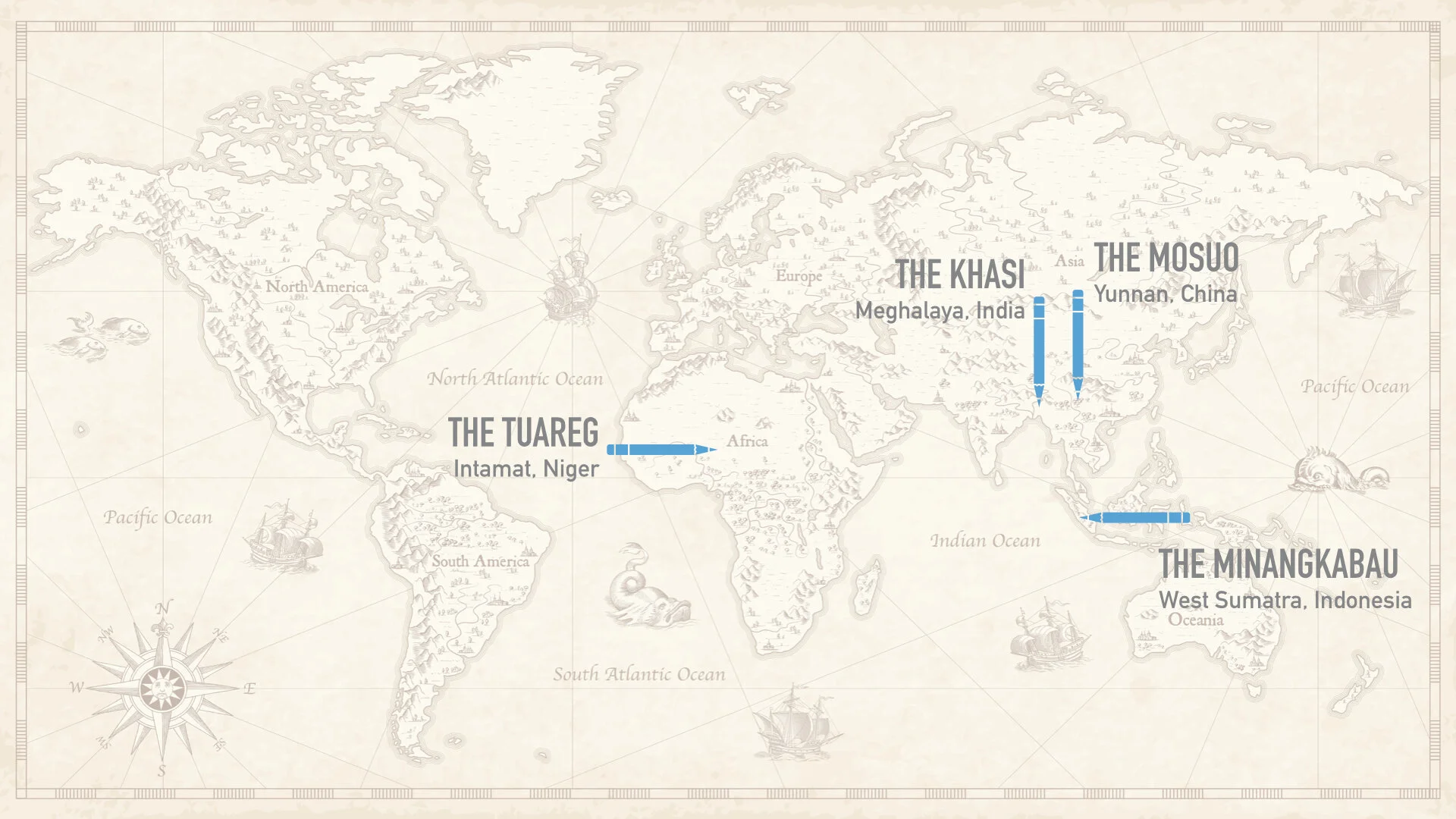 Matriarch transports viewers to four long-established but largely unknown matriarchal societies through the eyes of four females—a Khasi Indian girl that everyone expects to rule one day, an adolescent Tuareg African growing into womanhood, a Mosuo Chinese mother at a crossroads in mid-life, and a Minangkabau Indonesian grandmother protecting her clan’s future.